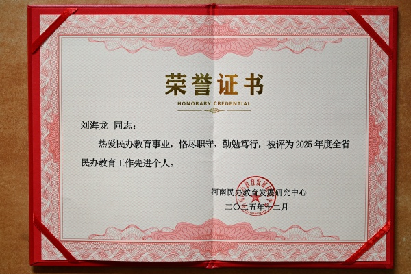 [嵩山少林文武学校]刘贺龙董事长、刘海龙校长荣获“2025年度全省民办教育工作先进个人”