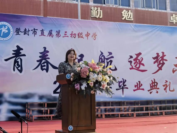 仲夏蝉鸣游子意,木棉花开毕业时。时光倥偬,三年朝暮,在九年级毕业生即将背起行囊远行之际,7月1日上午,登封市直属第三初级中学在升旗广场举行了以“青春启航·逐梦未来”为主题的2023届毕业典礼。校长刘俊颖、党支部书记付向丽等学校领导、九年级全体师生、家长代表和八年级学生代表参加了本次活动。