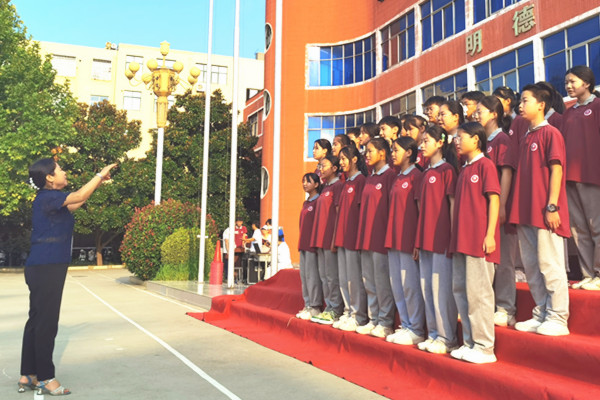 国歌声声唱,不忘中国心。首先举行升国旗仪式,伴随着激昂的旋律,学校全体师生庄严肃穆,向国旗致礼。当鲜艳的五星红旗迎着朝阳缓缓升起,新学年的希望和梦想,也在每一位莘莘学子的心中蒸蒸升腾。