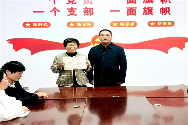 随后,学生代表孔妍心手捧鲜花上台,向王老师献上敬意与祝福,稚嫩的举动里满含对师恩的铭记;教师代表李晓玲则分享了与王老师并肩共事的难忘时光,“她不仅是同事,更是良师益友,备课室的深夜灯火、教研时的思维碰撞,都成了我们心中最珍贵的回忆”,话语间满是不舍,引得在场众人频频动容。王爱敏老师也在掌声中动情回应,发表了感人至深的退休感言,言语间饱含对教育事业的眷恋、对同事与学生的不舍,也对未来生活充满期待。最令人动容的时刻,当属李校长为王老师颁发退休荣誉证书的环节。“一纸证书,写满春秋故事;半生坚守,育得桃李芬芳”,这份沉甸甸的荣誉,见证了一位教育工作者半生的奉献与坚守。