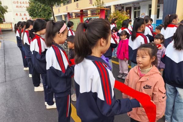 首先是升国旗仪式,紧接着少先队辅导员陈晓丽老师宣读新队员名单,李承泽、乔烁萌、钟雨诺等40名同学顺利获批入队。然后五年级老队员为新队员佩戴鲜艳的红领巾,伴随着《红领巾之歌》的旋律,新老队员互敬队礼,晨光下的红领巾格外耀眼,象征着少先队精神的接力传递。