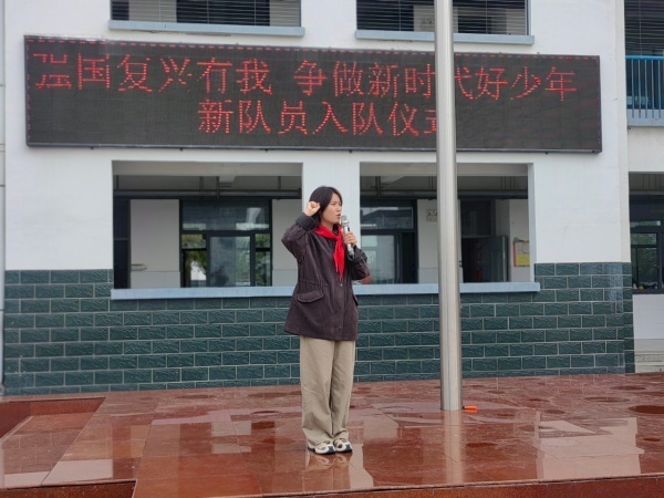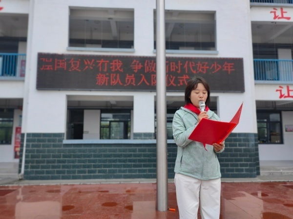 这是整个仪式最激动人心的环节。德育主任白阿丽宣布新队员入队名单,老队员为新队员佩戴红领巾。当红色的领巾在胸前飘扬,新队员的脸上绽放出灿烂而自豪的笑容。紧接着,在大队辅导员的带领下,全体队员高举右拳,庄严宣誓,稚嫩却坚定的声音汇聚在一起,铮铮誓言是他们许下的郑重承诺,更是他们的坚定决心。