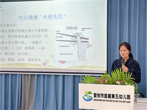 保健医李慧霞老师带来“膳食营养与中医健康”专题内容,为幼儿健康养护提供新思路。她从中医食疗智慧出发,深入阐释“厨房即药房,食物即药物”的理念,强调以食为媒、以养代医,结合药膳养生与“治未病”思想,提供科学实用、贴近生活的健康指导。