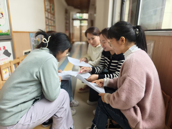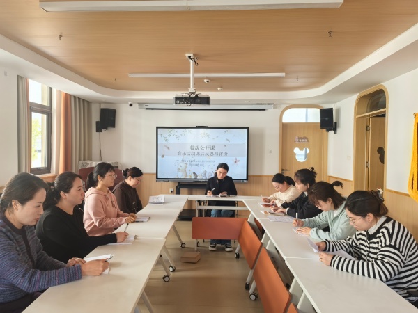 观摩活动结束后,业务园长张灵霞组织语言组教师开展评课研讨。授课教师先行自评反思,随后听课教师围绕活动目标适切性、过程合理性、教学游戏性及师幼互动性等各抒己见,共同研讨课程亮点与提升。