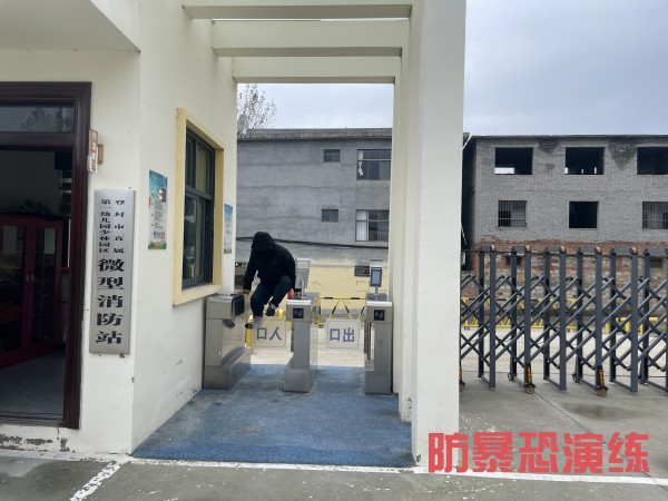 演练前,园区已对安保人员、教职工进行专项培训,明确各岗位职责与应急流程;演练中,情景设定贴近真实——一名“可疑人员”试图强行闯入园区。险情突发后,安保人员立即启动应急预案:一键报警系统快速响应,保安手持防暴器械迅速上前,与“可疑人员”形成对峙并有效阻拦;通讯组同步通过广播通知全园进入紧急状态。
