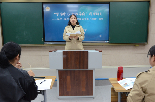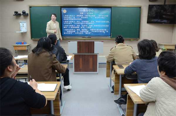 教导处副主任韩晓培对本次语文课堂提出肯定,三节课均做到了四个“注重”:注重语文要素的落实、注重语言运用的体现、注重“三单”的使用、注重“教学评”一致性的体现,同时为全体语文教师明确了“学为中心”四个步骤的实施策略。