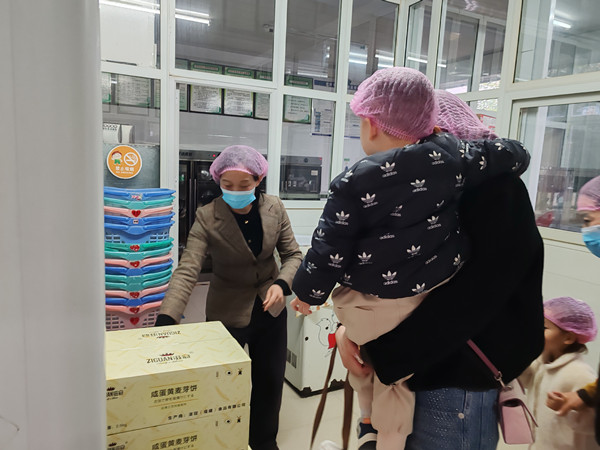 家委会代表与幼儿一起参观食堂