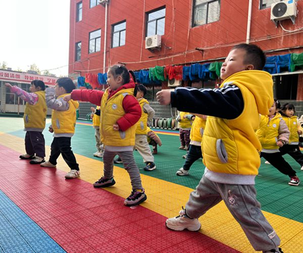 “一二三四,蹦吧蹦吧!”随着欢快的旋律响起,开场环节瞬间点燃全场。小班萌娃们晃着小脑袋、跺着小脚丫,跟着节奏蹦蹦跳跳,模样可爱又认真;阳光洒在一张张笑脸上,连空气里都飘着快乐的味道,轻松活泼的氛围瞬间包围了整个操场。