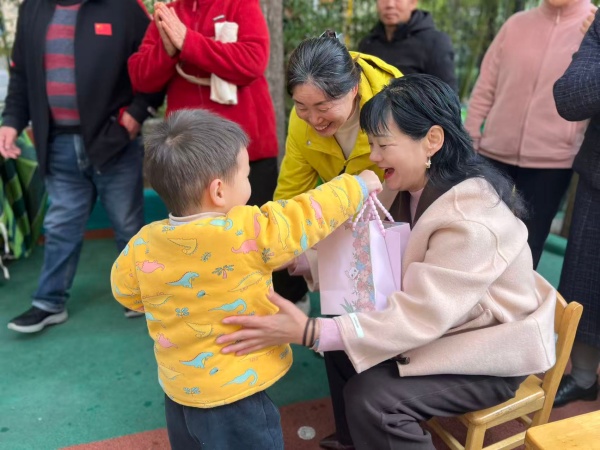 活动在温馨的问候中拉开帷幕。伴随着一曲动感的舞蹈,现场的氛围变得热闹又暖心,接下来的游戏环节,爷爷奶奶们一起玩杯子接力赛、协作运球、摸人侦探等游戏,校园内充满了欢声笑语。活动的温情时刻,莫过于“感恩献礼”环节,孩子们作为小小代表,手捧家人精心准备的节日礼物,带着满满的祝福,慢慢地走到爷爷奶奶面前,好多长辈眼里都亮晶晶的,特别温暖!最后,伴随着《中华孝道》的音乐,孩子们用最童真、最响亮的歌声,唱响了专属于重阳节的祝福。那一张张认真的小脸蛋,一句句稚嫩的歌声,都是献给爷爷奶奶们最珍贵的礼物。