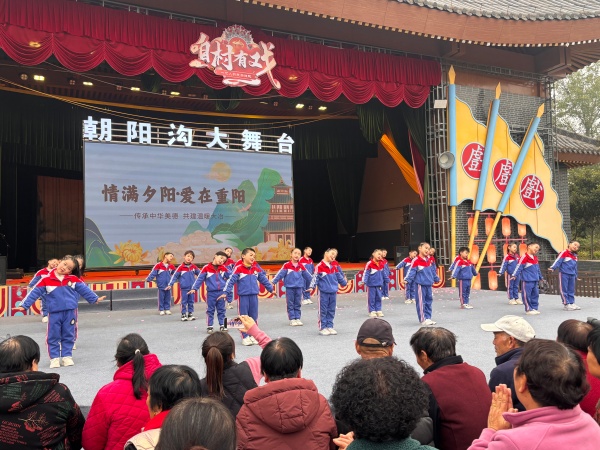 10月29日,大冶镇朝阳沟重阳节活动现场暖意融融。大冶镇西刘碑新区幼儿园的孩子们身着整齐服装,带来舞蹈《孝心到永远》。伴随着温情的旋律,孩子们舒展肢体,用灵动的舞姿演绎对长辈的敬爱与祝福,稚嫩的脸庞、认真的神情感染了现场每一位观众,赢得阵阵掌声。此次校园外的实践活动,让孩子们在真实场景中理解了重阳节的意义,也让敬老爱老的传统美德在更多人心中传递。