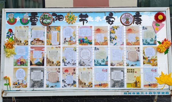 10月29日,农历九月初九,重阳佳节。大金店镇中心小学以“墨韵传秋意 孝心映重阳”为主题举办重阳节书画展。活动前期,各班老师通过主题班会讲解重阳节敬老习俗与二十四节气物候知识,引导学生将文化感知融入创作。