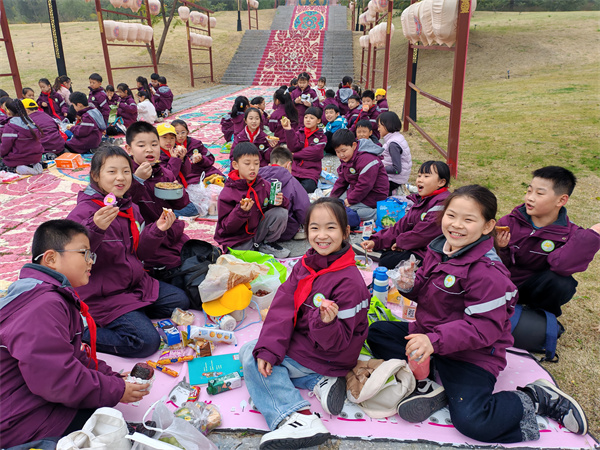 踏秋寻梦,朗诵华章。10月30日,五六年级徒步远足活动也如期而至。师生们意气风发,依照指定路线,井然有序地朝目的地——音乐大典前行。同学们用脚步丈量距离,用坚强面对挑战——从出发时的兴奋期待,到中途的互相鼓劲,再到终点成就感满满,每一步都是成长的印记。抵达目的地后,野餐环节大家共享美食、增进情谊;文艺表演环节更是精彩纷呈:朗诵节目声情并茂、饱含深情;手势舞表演整齐划一、活力满满,充分展现了“和善少年”的风采。全程往返15公里远足之旅,让师生在并肩中懂得坚持的意义,在风吹日晒中感受意志的力量,更在观察草木、聆听风声中重新发现课本之外的鲜活世界。