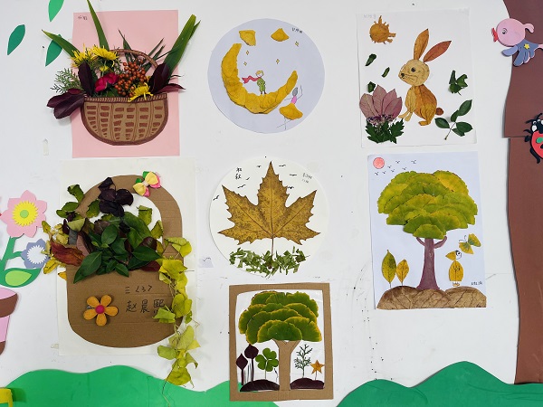 在这些作品中,同学们的创意天马行空。有同学将树叶与绘画结合,画出树下躲雨的小人,充满生活气息;有同学用树叶制作出花篮,里面“盛放”着秋叶与鲜花,别致又精美;还有同学以经典故事为灵感,用树叶拼出了《小王子》的童话场景,充满想象力。每一幅作品都凝聚着同学们对秋天的观察与热爱,他们在收集树叶、构思创作的过程中,亲近了自然,也锻炼了动手能力与审美能力。