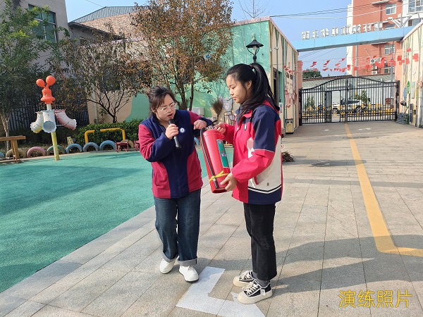 演练前,班级通过消防安全主题教育活动,向孩子们普及了火灾逃生技巧、灭火器使用方法等基础消防知识,让师幼对演练流程和注意事项了然于心。上午10点,随着模拟火灾警报声的响起,演练正式开始。各班教师迅速反应,按照预定疏散路线,沉着有序地引导幼儿用湿毛巾捂住口鼻,弯腰低姿,快速通过安全通道撤离至幼儿园操场的指定安全区域。整个疏散过程紧张而不慌乱,从警报响起至全体师幼安全集结,仅用时2分钟,展现了良好的应急反应能力。接着,秦金霞园长对本次演练进行了总结,再次强调了消防安全的重要性,曹佳慧老师现场演示了灭火器的正确使用方法,让师幼直观掌握灭火技能。