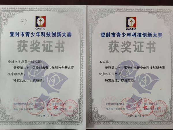 在第三十一届登封市青少年科技创新大赛中, 登封市直属第一幼儿园师幼凭借扎实的实践能力和丰富的创新思维,共荣获44项荣誉,获评“优秀组织单位”!