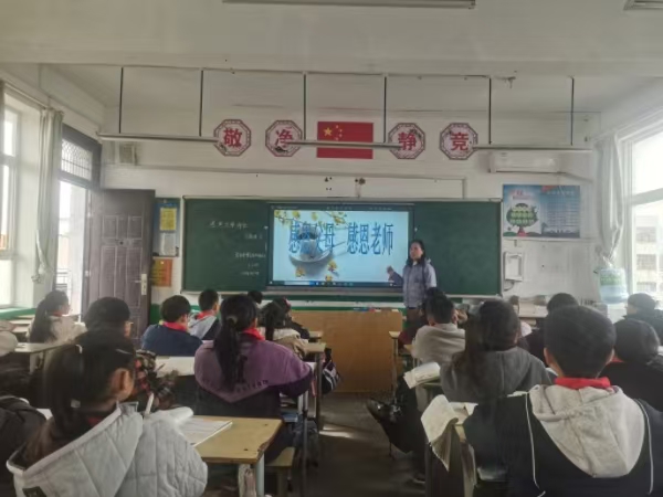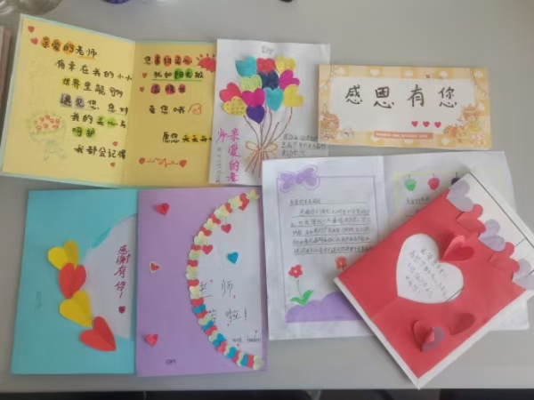 各班级主题队会氛围热烈,学生们踊跃分享亲身经历:有同学讲述父母深夜守护生病的自己、冒雨接送上学的暖心瞬间;也有学生细数老师课后耐心答疑、低谷时鼓励打气的点滴温暖,质朴话语里满是真情,引得现场师生动容。随后的手工环节中,大家巧用彩纸、丝带、画笔精心制作感恩卡,一笔一画绘心意,一言一语表真情;感谢信撰写时,孩子们将羞于当面表达的感激落于笔尖,字里行间满是对父母师长的敬爱与感恩。