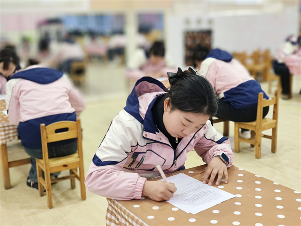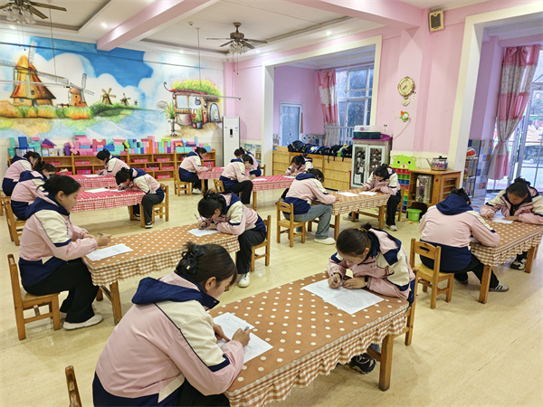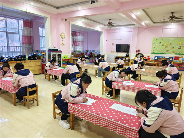 考场上,全体教师精神专注、认真审题、审慎作答,将对师德规范的认知转化为笔端的严谨答案,展现了良好的职业素养和学习态度。大家纷纷表示,此次专项考试不仅是对自身师德师风知识的一次系统检验,更让自己进一步明确了幼儿园教师这个职业行为的“红线”与“底线”,未来将以细则要求为行为准则,把师德修养融入日常保教工作的每一个细节。