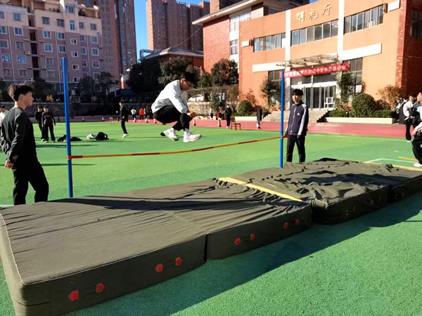 19日,初中部运动会率先拉开帷幕。各项赛事渐次展开:短跑赛道上,选手们如离弦之箭冲刺向终点,风声与呐喊声在耳畔交织;跳高场边,一次次腾空跃起的身影,将“突破自我”的信念写在赛场上;实心球投掷区,弧线划破天际,力量与精准的碰撞引来阵阵喝彩;4×100米接力赛的跑道旁,更是聚满了助威的师生,交接棒的瞬间,默契与信任在赛道上传递。从预赛的激烈角逐到决赛的巅峰对决,每一位选手都拼尽全力,将少年的朝气与韧劲绽放在赛场的每一处角落。
