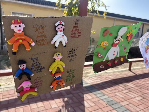四年级的活动主题是“我的职业梦想”。同学们纷纷化身“职业达人”,通过多种创意形式表达自己对未来的憧憬。他们可以绘制图文并茂的职业主题英语手抄报,也可以用橡皮泥捏出可爱的医生、警察或厨师;更有趣的是,同学们还制作了各式各样的“职业启蒙帽”——如消防员的头盔、厨师的高帽,以及利用塑料瓶、纸杯等废旧材料制作的“职业小人偶”。这一件件充满奇思妙想的作品,不仅是英语词汇学习的成果展示,更是一次生动的职业启蒙教育。同学们在动手实践中,不仅学会了“doctor”、“teacher”、“pilot”等职业单词,更对自己的未来展开了无限的想象。