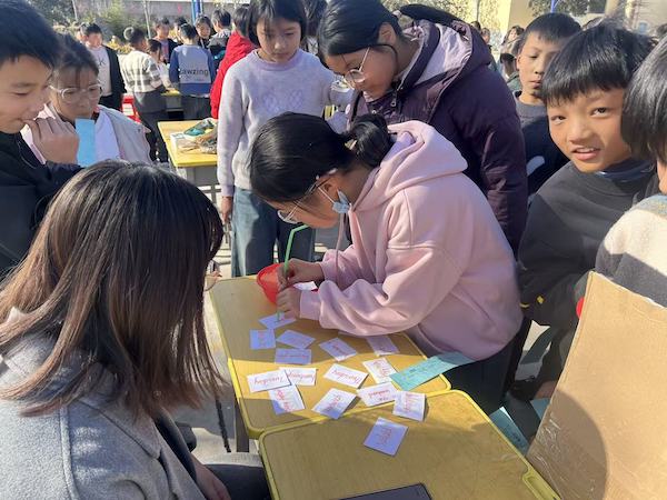 五、六年级的同学们则迎来了一场智力与勇气的挑战——“英语闯关嘉年华”。活动设置了五个精心设计的关卡,内容涵盖口语对话、单词拼写、趣味阅读、英语谜语和情景表演等。每位同学手持一张“闯关卡”,需要依次前往不同关卡完成任务。顺利通过一个关卡,裁判老师就会在闯关卡上盖上一枚象征荣誉的印章。规则明确要求“不得重复闯关”,这既考验了同学们的英语综合能力,也培养了他们的策略与勇气。活动现场,同学们或凝神思考,或自信交流,为了集齐五枚印章而全力以赴。每盖上一个印章,脸上都洋溢着成功的喜悦。这种游戏化的评价方式,极大地调动了高年级学生的参与热情,让他们在挑战中运用知识,在成功中收获自信。
