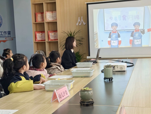 今天的评委也很特别哦!他们是从大班每个班选出的幼儿代表。小评委们认真地倾听着每一位小选手的播报,从语言表达、台风表现到对美食的理解,每看完一个美食播报员的视频时,小评委们会举起相应数量的小星星来为“美食播报员”打分,他们还会对每一位“美食播报员”小选手作以点评:“2号小朋友边打快板、边播报,听起来真有趣。”“4号小朋友介绍时声音响亮,但是语速有点快。”、“8号小朋友介绍菜品的营养比较多,还提醒大家不浪费粮食”……幼儿当评委的形式,不仅让孩子们学会了倾听与欣赏,还锻炼了他们的判断力与语言表达能力,真正实现了“在活动中成长,在互动中进步”。