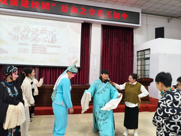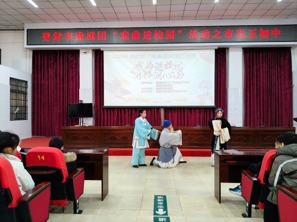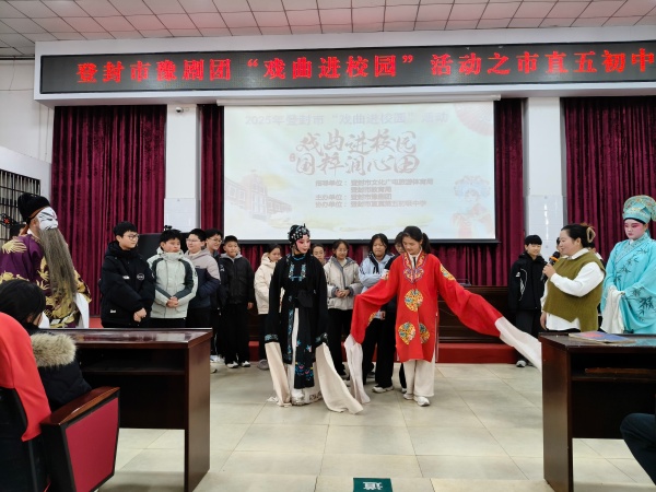 为传承中华优秀传统文化,让学生近距离感受戏曲艺术的魅力,12月2日,登封市豫剧团“戏曲进校园”活动走进登封市直属第五初级中学。豫剧团的演员们为全校师生带来了一场精彩纷呈的豫剧盛宴,让校园洋溢着浓郁的戏曲韵味。