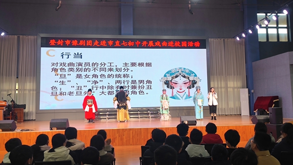 为弘扬中华优秀传统文化,厚植青少年文化自信,12月2日,登封市直属第七初级中学面向七年级全体师生开展“戏曲进校园,国粹润心田”主题活动,通过知识讲座、剧目展演、互动体验等形式,让师生近距离感受戏曲魅力,在校园内营造了“知戏、赏戏、爱戏”的浓厚氛围。