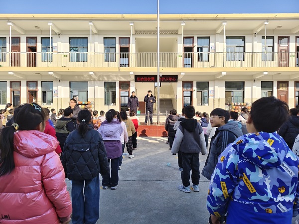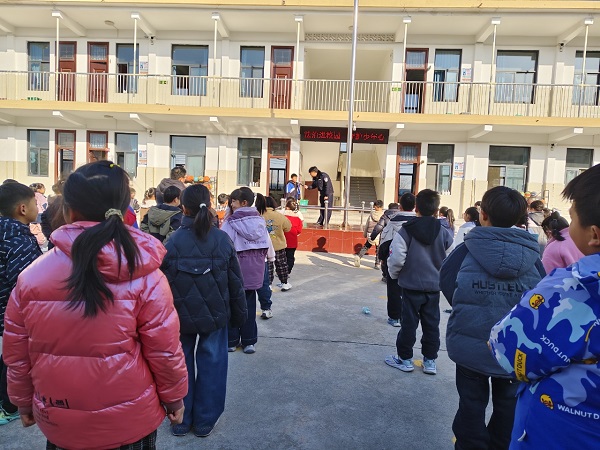 为让法律知识走进小学课堂,帮助低年级同学们树立法治意识,学会自我保护,12月4日上午,登封市博文路小学东校区特邀辖区派出所警官,到校开展了一场趣味十足、通俗易懂的法治教育专题讲座。一至三年级全体同学齐聚操场,认真聆听这场“法制启蒙课”。