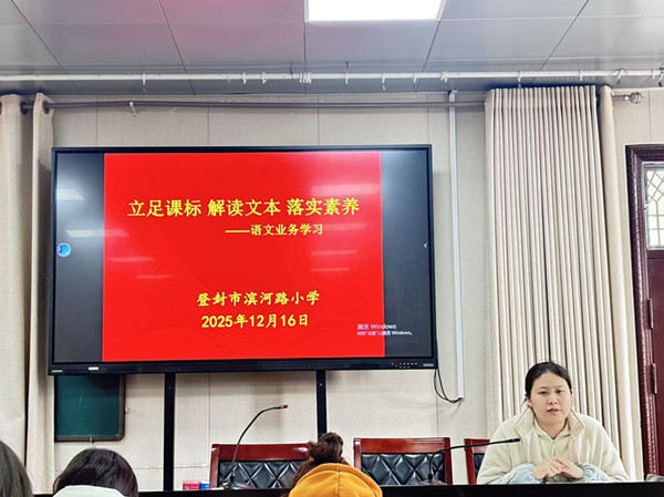 为深化语文课堂教学改革,落实核心素养导向的教学理念,2025年12月16日下午,登封市滨河路小学语文教研组在教导处的组织引领下,开展了一场别开生面的专题研修活动,全体语文教师齐聚一堂,共同学习语文教育专家王崧舟的“如何以学习情境重构单篇教学”专题讲座。此次活动旨在深入探索语文课堂教学新路径,提升语文教师的专业素养与教学能力,推动语文学科教学高质量发展。