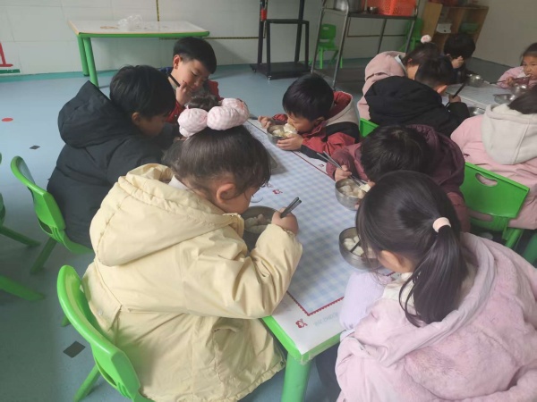 吃饺子了……听到声音,孩子们都兴奋的尖叫起来,吃着自己包的饺子,心里有说不出的高兴和满足。