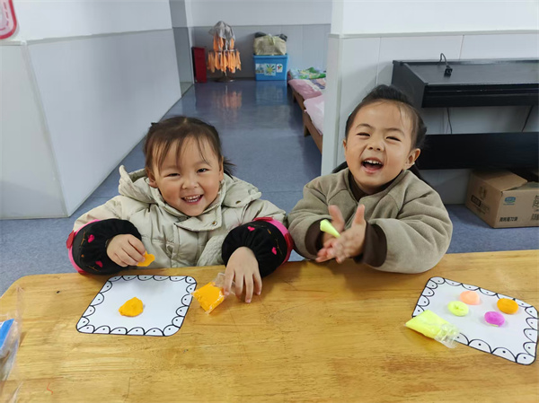 活动伊始,老师通过生动的故事、趣味的视频和图片,向孩子们讲解了冬至的由来和“冬至大如年”的传统说法,还带领孩子们认识了南北方冬至的不同习俗——北方吃饺子、南方吃汤圆。随后,趣味十足的手工环节拉开帷幕。孩子们在老师的指导下,化身“小小美食家”,认真地揉搓彩泥、捏出可爱的饺子和汤圆造型。一双双小手忙个不停,一张张笑脸洋溢着快乐,教室里充满了欢声笑语。老师还带领孩子们制作冰花,观察冰花的形成过程,除此之外,老师还带领孩子们一起吟唱冬至儿歌、玩冬至趣味小游戏,在轻松愉快的氛围中,孩子们不仅感受到了传统节日的温暖,更在动手实践中体验了创作的乐趣。