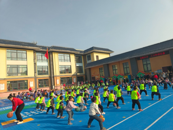 活动现场热闹非凡,各年龄段特色环节依次展开。小班萌娃与家长牵手登场,亲子课间操活力满满,稚嫩的步伐、欢快的律动,搭配家长温柔的陪伴,每一个画面都洋溢着童真与暖意;中大班的孩子们则化身“篮球小健将”,伴随着激昂的音乐、利落的动作、饱满的精神展现出阳光向上的风采,赢得台下家长连连喝彩。