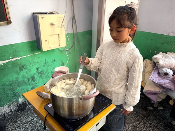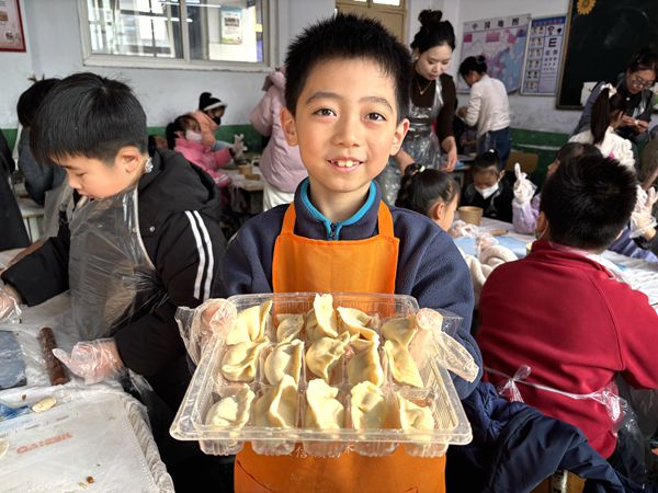 欢声笑语回荡在教室的每一个角落,孩子们看着自己亲手包出的“创意饺子”,脸上洋溢着自豪与喜悦。不一会儿,一盘盘热气腾腾的饺子端上桌,孩子们品尝着自己的劳动成果,鲜香的味道在舌尖散开,温暖也蔓延到了心底。
