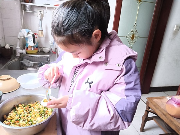 体验冬至民俗,孩子们化身“小小美食家”,在家中参与包饺子实践活动。手法虽略显稚嫩,却个个神情专注,在动手实践中体会劳动的乐趣,感受冬至阖家团圆的温馨氛围。一碗碗热气腾腾的饺子,不仅暖胃更暖心,让学生在实践中读懂“冬至团圆”的文化内涵。