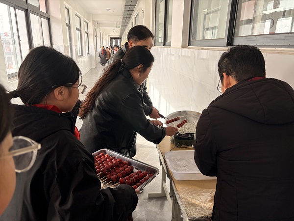 活动现场,工作人员首先为同学们生动讲解了二十四节气的由来与内涵;随后,详细介绍糖葫芦的历史与制作工艺,从山楂挑选、串果技巧到熬糖火候,一步步揭开这份传统小吃背后的匠心。