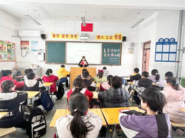 本次活动以班级为单位,每个班级根据班级特色以丰富多彩的形式畅谈读书乐趣,分享读书心得。交流互动环节,同学们各抒己见,围绕书中的人物性格、精彩桥段展开热烈讨论,思维的火花在教室里不断碰撞。谈及经典名著《西游记》,同学们的分享热情格外高涨。有的同学绘声绘色地讲述孙悟空大闹天宫的豪迈场面,模仿着齐天大圣的经典动作,引得台下阵阵欢呼。而《安徒生童话》的分享则为交流会增添了一抹温情与梦幻。大家分享着《丑小鸭》中逆境成长的励志故事,感慨坚持与勇气的力量;畅谈《皇帝的新装》里的荒诞情节,直言诚实的可贵。老师们则在一旁适时引导,鼓励大家大胆表达内心想法,同时分享精读技巧,推荐更多优质读物,让同学们收获满满。