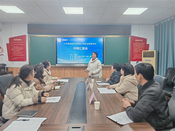 冬日初阳暖校园,教育科研走在前。为扎实推进课题研究进程,确保课题研究达成预期目标,12月25日下午,登封市商埠街小学举办河南省教育科学一般课题《小学高段数学阅读能力培养的策略研究》中期汇报会。登封市教师发展中心陈晓霞老师、李军营老师莅临指导,为课题精准把脉。商埠街小学校长姜大辉、教学负责人高俊丽携教导处、课题组成员及全体数学教研组长共同参会。