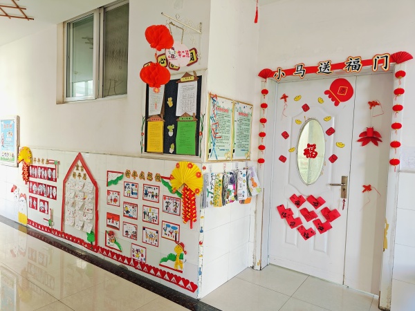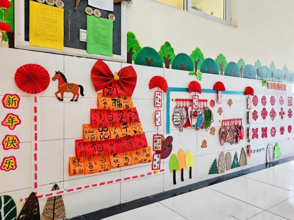 活动现场热闹非凡,老师和孩子们化身“创意设计师”,分工协作、默契配合。大家一起剪窗花、贴福字、挂灯笼,用五彩的卡纸制作新年挂饰,用稚嫩的小手装点教室和走廊。红彤彤的灯笼随风摇曳,精致的窗花点缀窗棂,充满童趣的新年手工作品随处可见,整个幼儿园被装点得焕然一新,处处洋溢着浓浓的新年气息。
