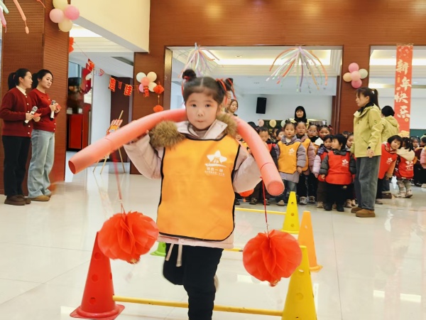 随后的欢乐游戏环节精彩纷呈。“挑灯笼纳福气”中,孩子们小心翼翼挑起灯笼,收获满满的新年祝福;“卷福”游戏里,孩子们小脚忙不停卷起福气的彩卷,在游戏中体会快乐;“快乐贴贴贴”“沾福气”等游戏趣味十足,孩子们在尽情玩耍的同时,也将新年的美好寓意牢记心间。