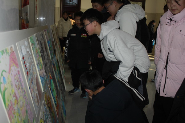 书画展陈显匠心 美育之花绽校园。在学校体音美教研组长于宁一主任的督导下,历经一个多月的精心筹备,元旦美术展如期开展,成为校园文化的一道亮丽风景线。此次展览得到学校领导的大力支持,美术组教师悉心指导,全校学生踊跃参与,共征集到200余幅书画作品。经过专业评选,150幅优秀获奖作品脱颖而出,在校园展厅集中展出。作品形式多样,涵盖书法、绘画、剪纸等多个类别:书法作品或工整端庄,或飘逸洒脱;绘画作品或色彩绚丽,或意境深远,既有对祖国山河的赞美,也有对美好生活的憧憬,充分展现了同学们的艺术才华与创造力。师生们驻足展厅,细细品味每一幅作品,在笔墨丹青中感受艺术的魅力,接受美的熏陶。此次展览不仅为学生提供了展示才艺的平台,更厚植了校园美育根基,让艺术之花在校园中绚烂绽放 。