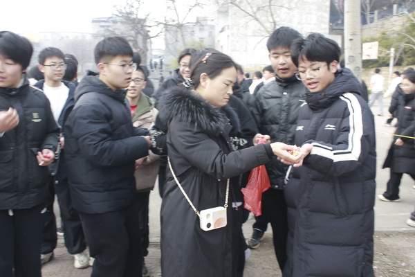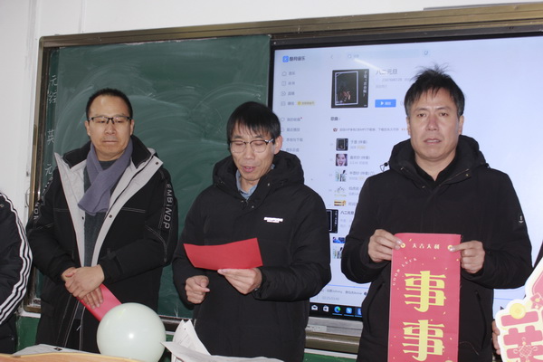 春联寄情送祝福 墨香浸润师生心。 “翰墨飘香传暖意,春联寄情迎新年”,系列活动中最具文化气息的“送祝福”环节温暖上演。学校领导带着精心准备的定制春联,逐一走进各班教室,为师生送上最真挚的新年问候。这些春联由书法老师结合各班学风特点、班级文化量身打造,或赞学风浓厚,或颂团结友爱,或寄奋进之志,笔锋遒劲有力,寓意美好深远。“勤学善思求真知,笃行致远育英才”“团结奋进凝合力,博学笃行展宏图”,一幅幅红彤彤的春联不仅装点了教室,更承载着学校对每个班级的殷切期望。同学们双手接过春联,小心翼翼地收藏起来,脸上洋溢着幸福的笑容,这份饱含文化底蕴的祝福,如冬日暖阳浸润心田,让传统文化在校园中代代相传。学校领导精心编写的美祝福语,也被班级珍藏留念。