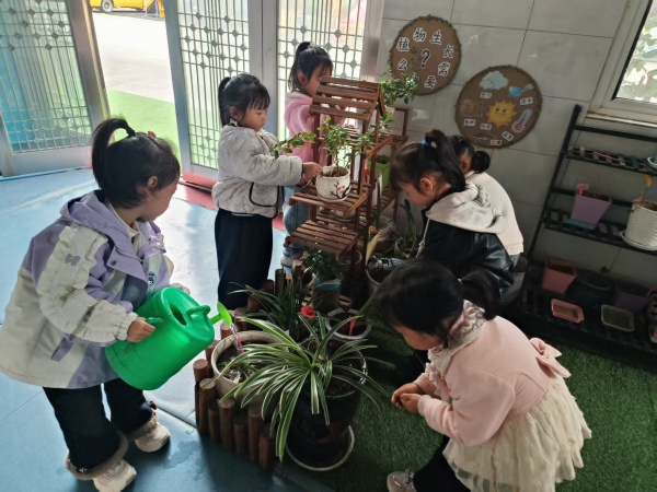 走进各班活动室,不同区域的布置错落有致、充满童趣。美工区内,孩子们化身“小小创作家”,用彩纸折出各式作品,在动手操作中感受折纸的快乐。植物角内,孩子们分工合作,浇水、松土、观察记录,细致地观察叶片的舒展、花苞的绽放。在照料植物的过程中,他们感受着生命的成长变化,培养了责任感和观察力。表演区,有的扮演童话角色,有的模仿小动物,伴随着欢快的音乐载歌载舞。孩子们自主编排简单的剧情,大胆展现自我,在肢体表达与语言互动中,自信心和表现力得到充分锻炼。